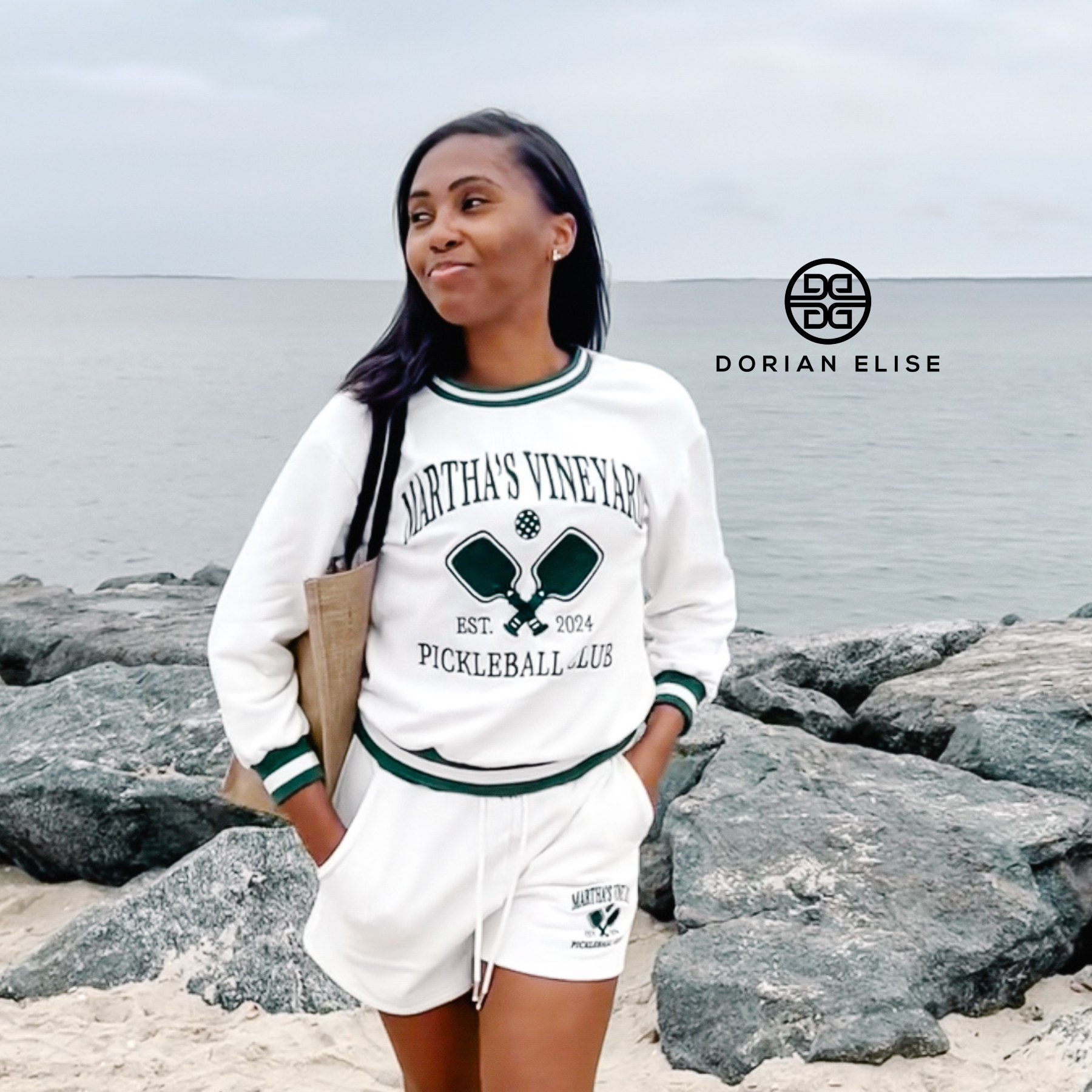 Whether you're rallying on the court or just vibing with the aesthetic, these shorts must make your Vineyard summer essentials. Comfortable, breathable, and effortlessly stylish featuring a rhinestone embellished drawstring—perfect for casual play, beach hangs, or strolling through Oak Bluffs in style. A must-have for anyone living that pickleball (or pickleball-adjacent) life.